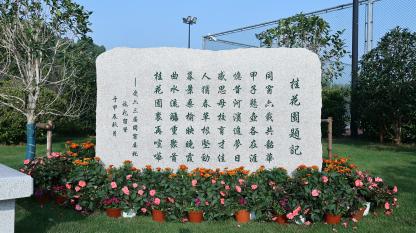 据悉,学校桂花园由1963届校友、固生堂中医连锁管理集团共同出资建设。圆形广场属金,绿植属木,曲线形步道属水,丹桂及芍药盛放的花色属火,广场铺装的大地象征属土,整个桂花园五行相生,环环相扣。