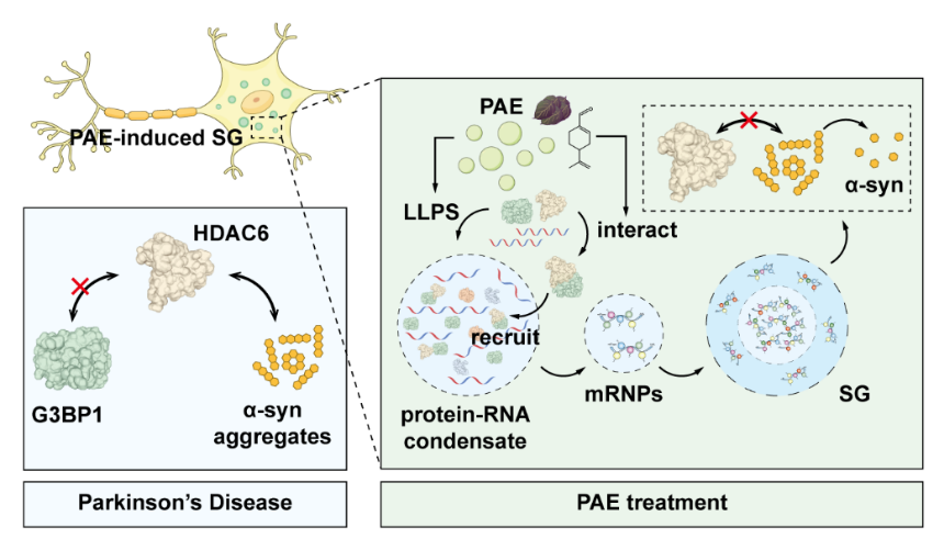 中药学院发现紫苏醛诱导G3BP相变与应激颗粒形成改善帕金森病作用机制