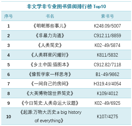 借阅量排名前十名的非专业图书(不含续借)↓