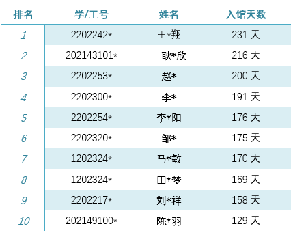 阅览室开放天数