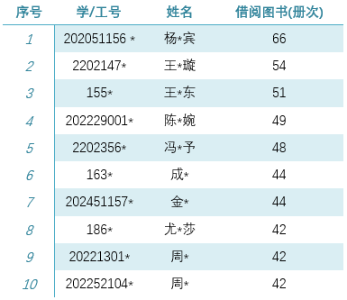 读者年度借阅图书最多为66本(不含续借)↓