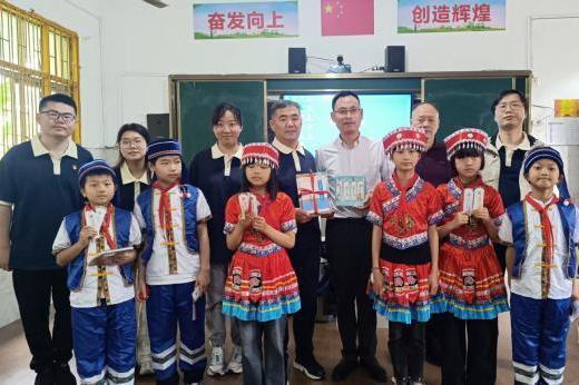 在中医药文化传播方面,实践团创新开展青少年科普教育。在浯口瑶冲瑶族小学,民族预科班学生张雅轩系统教授八段锦、太极拳及五禽戏等传统养生功法。中医学专业(五年制)学生程佳馨以“神农尝百草”动画为载体,生动展示中医药文化精髓。当瑶族学生接触艾草香囊时,对“山茱萸等家门口常见植物的药用价值”表现出浓厚兴趣。在温泉镇中心小学,马克思主义学院硕士研究生张友维以“千年智慧传薪火,小小中医护中华”为主题开展文化讲座,并通过赠送中医药科普读物、四诊书签及艾草锤等文创产品深化教学效果。