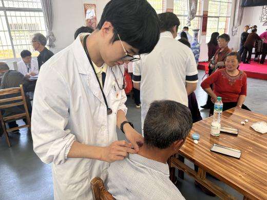 为了将所学回馈社会,更好地服务基层健康,实践团举办多场联合义诊。中医诊断、针刺推拿、中医智能体质辨识等服务深受村民欢迎。在义诊中,师生们为村民提供穴位按摩、药食同源膳食建议等健康指导。