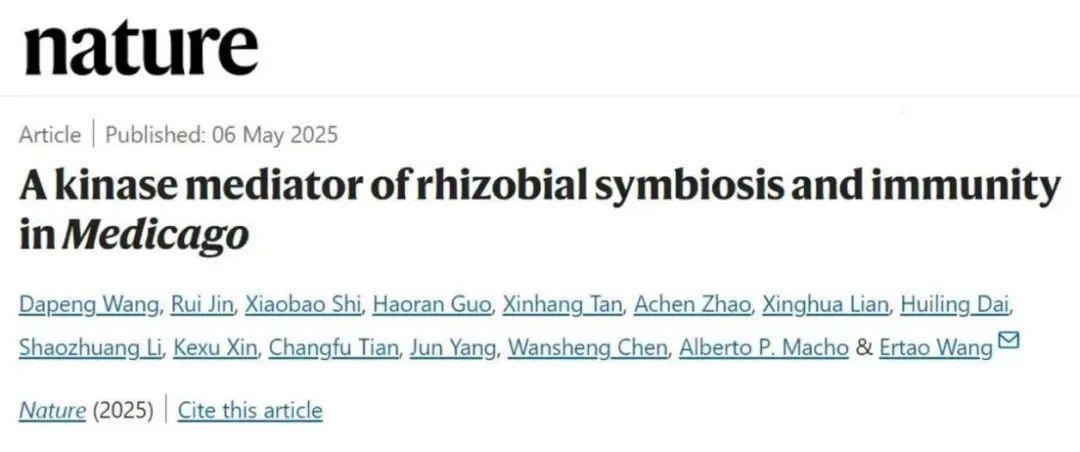 5月6日,万象城官网中药研究所青年教师金蕊博士以共同第一作者身份在国际顶级期刊《自然》(Nature)在线发表了题为A kinase mediator of rhizobial symbiosis and immunity in Medicago的研究论文,揭示了细胞质类受体激酶MtLICK1和MtLICK2在豆科植物与根瘤菌共生信号转导和免疫调控中的双重功能,为共生与免疫平衡机制研究提供新视角。