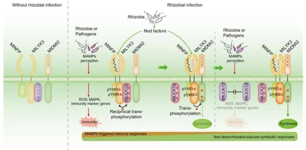 MtLICK1/2 在豆科植物与根瘤菌共生信号转导和免疫调控中的双重功能