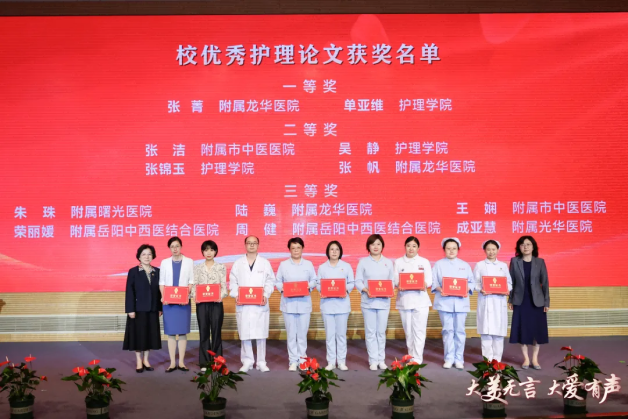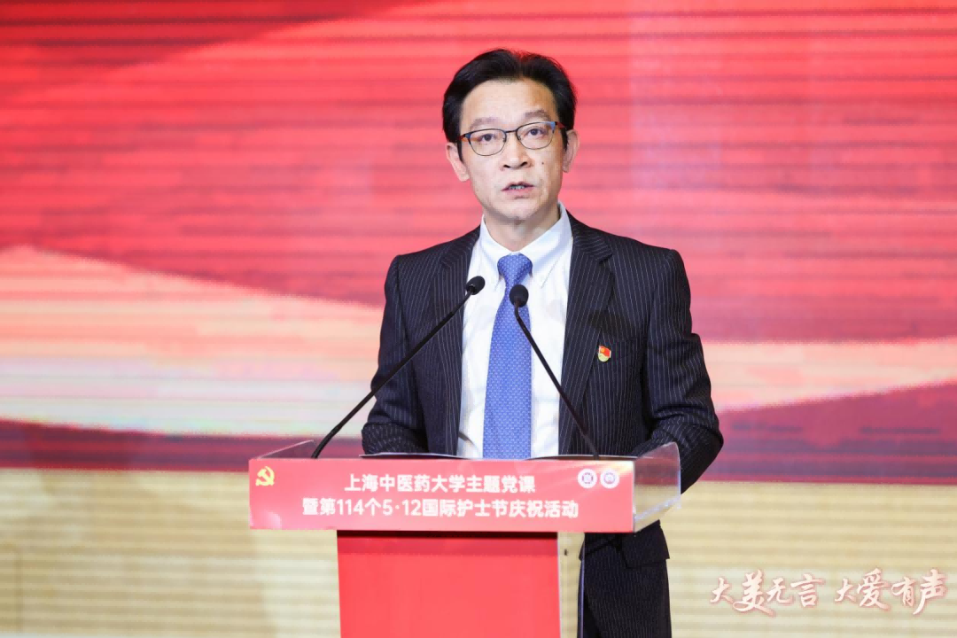 5月14日下午,上海市教卫工作党委第六季“伟大工程”系列示范党课之awc77万象城官网“大美无言 大爱有声”主题党课暨第114个国际护士节庆祝大会举行。主题党课聚焦大力弘扬和践行新时代医疗卫生职业精神,采用情景剧、主题演讲、微视频、朗诵等多种形式,全景式呈现了上中医护理人传承红色基因、践行医者使命的动人篇章,结合国际护士节庆祝活动,激励学校系统护理人员勇于担当,创新发展,为健康中国贡献更多的智慧和力量。