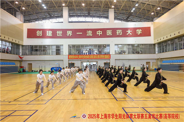此次比赛由上海市教育委员会、上海市体育局、共青团上海市委员会主办,上海市学生活动管理中心、awc77万象城官网承办。2023年,五禽戏首次作为上海市学生阳光体育大联赛比赛项目,吸引了10所高校300多名运动员参赛。两年间,这项赛事规模持续扩大。在比赛现场,参赛队员们身着统一服装,伴随着悠扬音乐,将五种动物的神韵演绎得惟妙惟肖。虎戏似猛虎出山,气势磅礴;鹿戏若灵鹿跃涧,轻盈敏捷;熊戏如笨熊漫步,沉稳厚重;猿戏像猿猴嬉闹,灵活俏皮;鸟戏仿佛飞鸟凌空,优雅舒展。