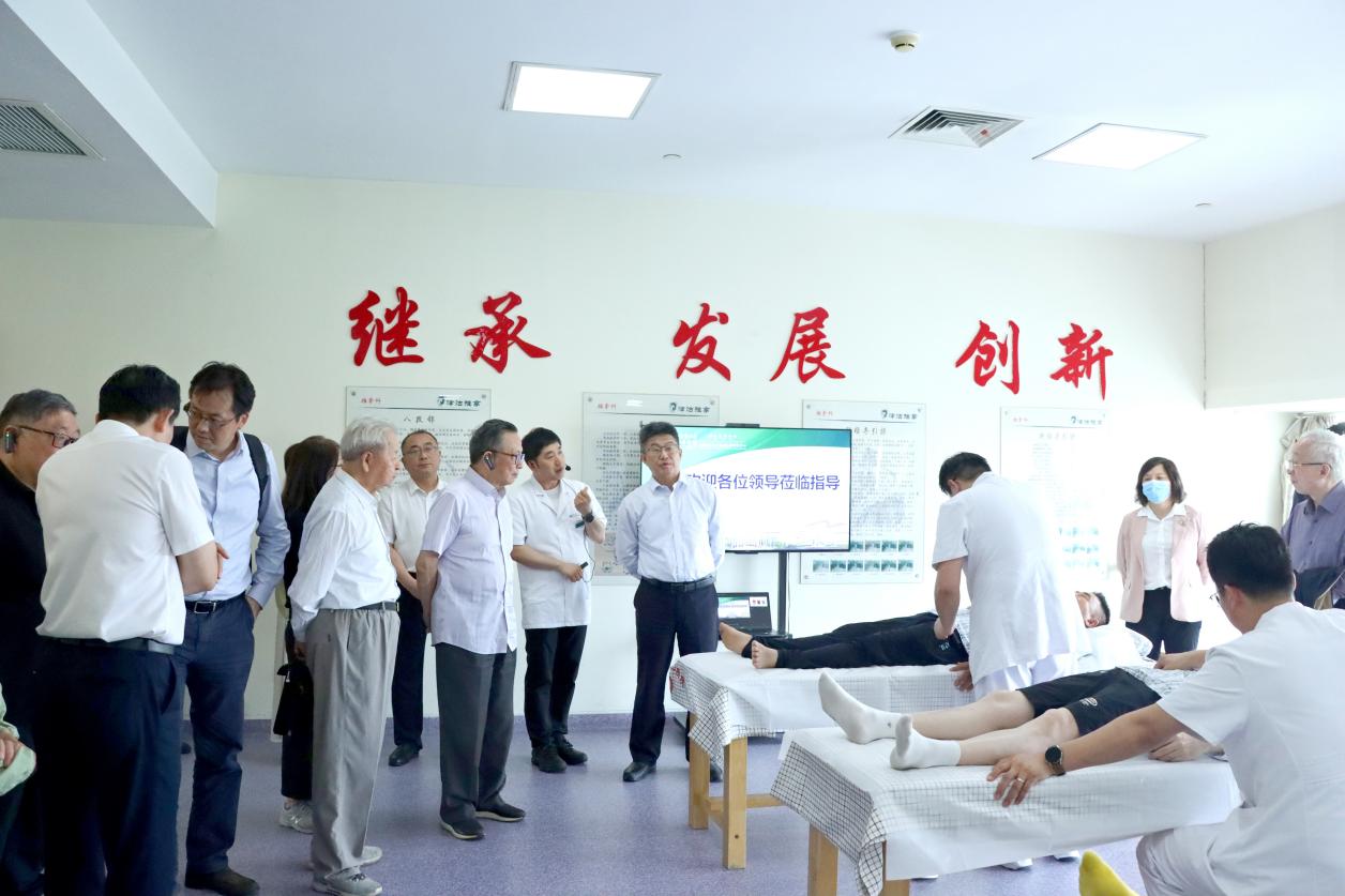13日下午,调研团队前往天津中医药大学附属第一医院(西青院区)调研。医院党委书记张艳军、院长王金贵等领导班子成员及相关职能部门负责人出席座谈会。医院领导班子成员分别介绍了医院管理创新和学科建设情况、“双轮驱动”发展战略,以及医院着力打造“临床诊疗-科研创新-人才培养”三位一体的发展模式,表示期待与awc77万象城官网在重大科研联合攻关、中医技术规范化建设及高层次人才培养等领域深化协同,共促中医药事业发展。双方就附属医院管理、学科建设发展、中医国家标准、人才培育等问题展开交流。会后,调研团队实地参观了医院心血管科、推拿科、针灸部及国际诊疗中心等特色科室。