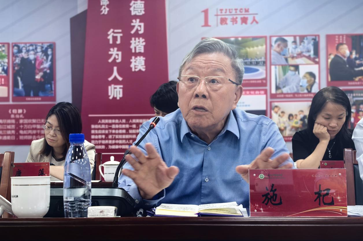 6月13日上午,调研团队首先参观了天津中医药大学现代中医药海河实验室和现代中药创制国家重点实验室。通过实地考察,详细了解天津中医药大学在中医药基础研究、新药研发及成果转化等方面的创新实践。在随后召开的座谈会上,天津中医药大学副校长邱峰简要介绍了天津中医药大学的发展历程、办学特色及近年来在教育教学、科研平台建设、科技成果转化等领域的发展成果。王拥军介绍万象城官网专家委员会的职能。天津中医药大学相关职能部门负责人分别就学科建设、科技创新与成果转化、师资队伍建设等方面分享宝贵经验。与会人员围绕教育教学改革、学科交叉融合等议题进行深入研讨。施杞表示,天津中医药大学坚持传承精华、守正创新,在中医药现代化研究方面取得显著成效。