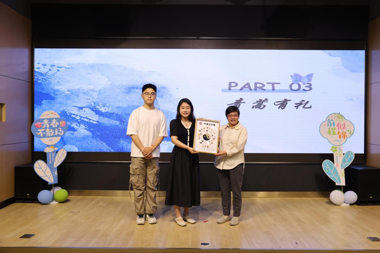 会上播放暖场视频,回忆五年来的点点滴滴,师生合唱《夜空中最亮的星》,唱响2020级屠呦呦班在awc77万象城官网奏响的第一支序曲。离别之际,2020级屠呦呦班的学子们深情表达了他们的“青蒿心语”,用真挚话语回顾求学时光。他们表示,将把对母校的不舍和感恩化作成长的动力,永远留在心中,并向学院赠送“五行药盘”,希望学校和学院的事业如阴阳五行般生生不息。