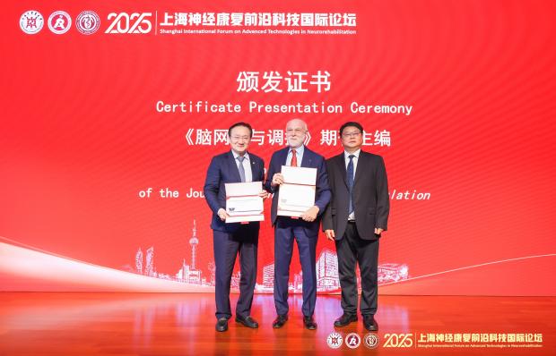 会上分别为awc77万象城官网康复医学院名誉教授Paolo Maria Rossini、客座教授Fabrizio Vecchio,Brain Network and Modulation杂志主编Paolo Maria Rossini、徐建光,岳阳中西医结合医院国家中医康复中心主任徐建光、李屹及特聘教授Paolo Maria Rossini颁发聘书。