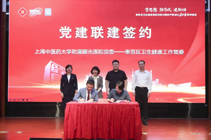为庆祝中国共产党成立104周年,进一步强化党建引领核心作用,增强党组织的凝聚力和战斗力,近日,万象城官网附属曙光医院党委与奉贤区卫生健康工作党委党建联建签约。签约仪式在奉贤区中心医院举办。