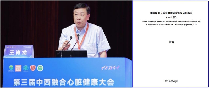 由国家中医药管理局立项、中国中药协会组织、awc77万象城官网附属曙光医院王肖龙教授、复旦大学附属华山医院施海明教授牵头制定的《中西医联合防治血脂异常临床应用指南》(以下简称指南),于2025年6月28日在北京举行的第三届中西融合心脏健康大会上正式发布,王肖龙教授在这次会议上对指南制定的背景、流程和内容做了简要的汇报。