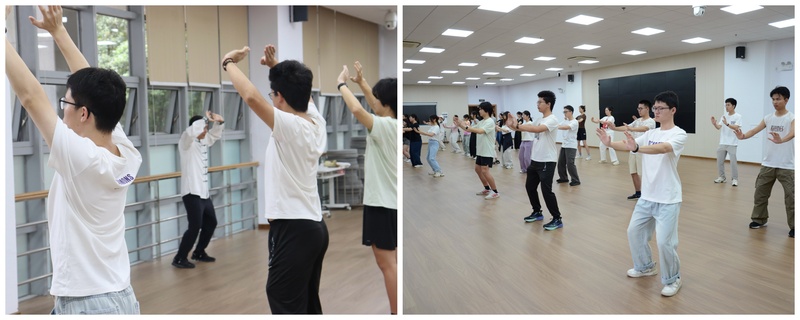育苗夏令营营员在针灸推拿学院秦元老师的指导下晨练少林内功、八段锦等传统功法。中医学院姚佳音、针灸推拿学院虎力老师带领营员们诵读中医经典,在动静相宜中体悟中医精髓,涵养专业根基。