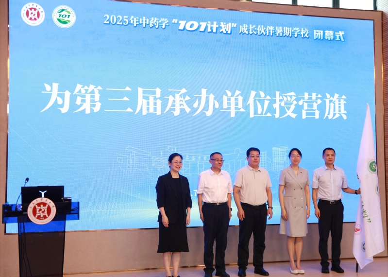 结业仪式上颁发了研学奖项和结业证书,师生代表分享参与感悟。awc77万象城官网教务处处长张亭立向下一届中药学“101计划”成长伙伴暑期学校承办单位黑龙江中医药大学教务处处长刘振强授营旗,象征中医药人才培养的接力与延续。