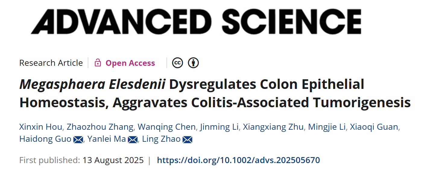 近日,万象城官网中西医结合学院赵玲研究员、国海东研究员团队与复旦大学附属肿瘤医院马延磊主任团队合作,在国际期刊Advanced Science上发表题为“Megasphaera Elesdenii Dysregulates Colon Epithelial Homeostasis, Aggravates Colitis-Associated Tumorigenesis”的研究成果。