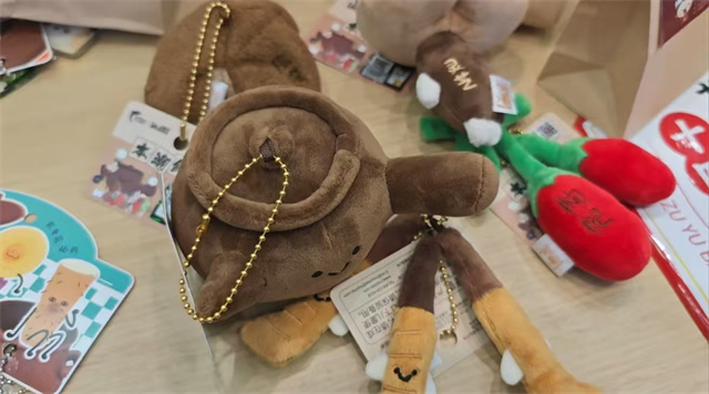 一个名为“本草盲袋所”的摊位上,充满着欢声笑语。李泓萱是校学生会主席团成员,也是24级针灸推拿学专业学生。她告诉记者,盲袋里,装着从传统文化和实用角度精心挑选的礼物。不仅有萌萌的中药玩偶和贴纸,也有能亲手培育的中药盆栽;艾草锤和经络梳可以帮助缓解疲劳、放松身心,中药足浴包更是一天学业之后的小小慰藉。