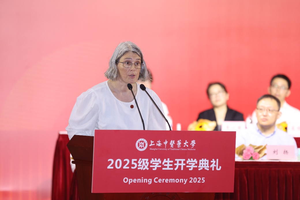 校首席教授、中药合成生物学中心主任Tanja Gaich表示,中医药是一种医学实践,更是一种看待生命的伟大态度。中医药历史悠久而充满活力,为上中医学子寻找新药和疗法提供了一个良好的开端。她鼓励同学们,“the future is built by those who dare to combine knowledge, persistence, and vision”,希望同学们勇于创新、敢于逐梦,为中医药事业的传承与发展贡献智慧和力量。