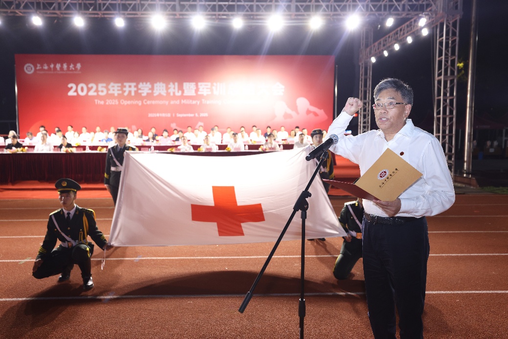 在校党委书记曹锡康的带领下,全体新生面向校旗和红十字会会旗庄严宣誓,立志为建设健康中国和振兴中医药事业贡献青春力量。
