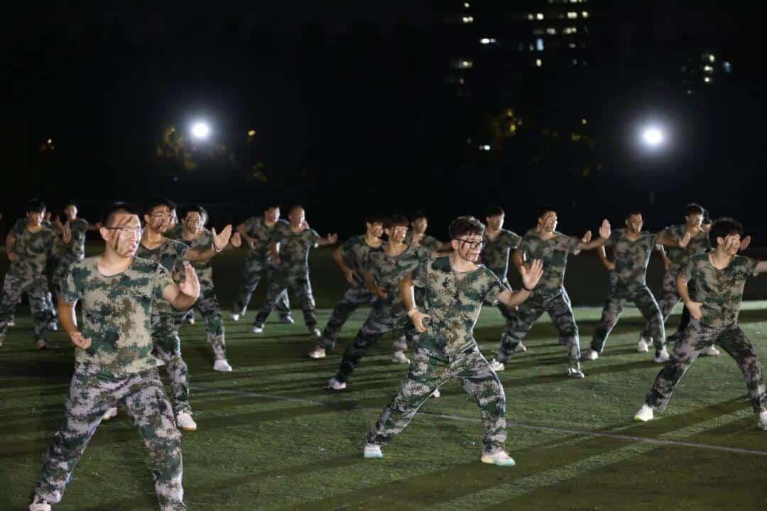 全体参训学生分成8个连16个排,踏着铿锵有力的步伐走过观礼台,同学们目光如炬、声震云霄,尽显上中医学子的昂扬风采与奋进姿态。