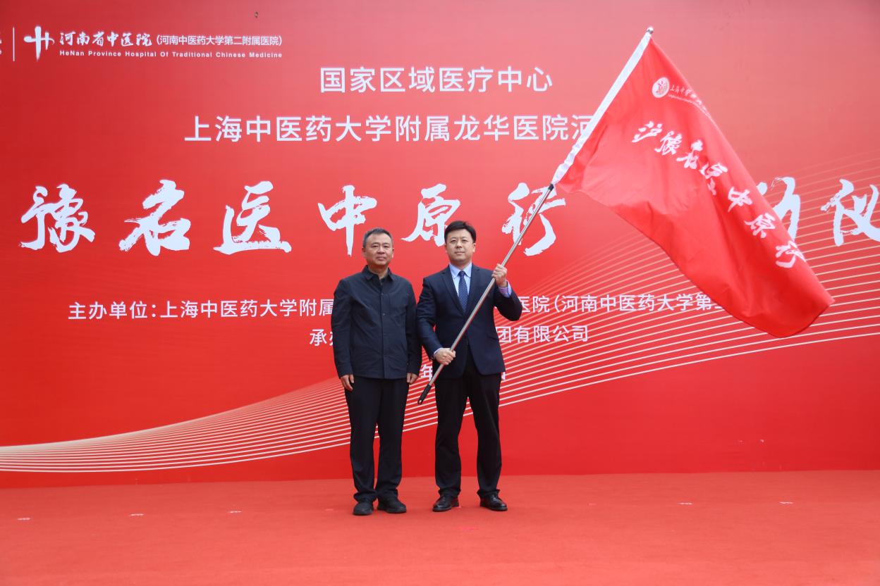 河南省卫生健康委副主任周勇代表省卫健委向龙华医院河南医院执行院长马超授“沪豫名医中原行”活动旗帜。