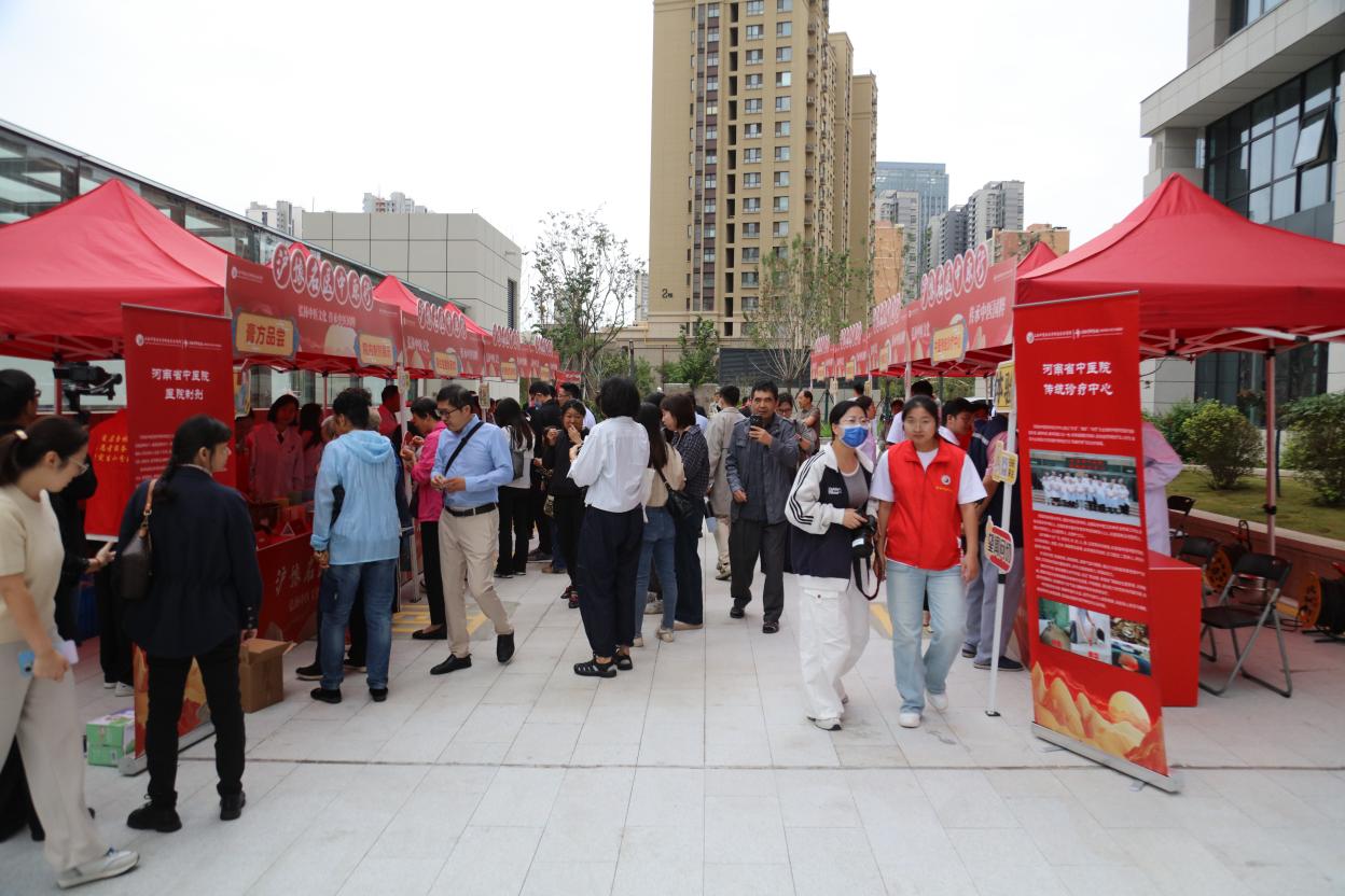 开诊当日,龙华医院与河南省中医院近40位专家现场义诊,联合开展“沪豫名医中原行”大型义诊活动。同时,院区西侧同步开展中医药文化市集活动,涵盖中医非药物疗法体验、中医药膳食品鉴、养生功法教学等。(龙华医院)