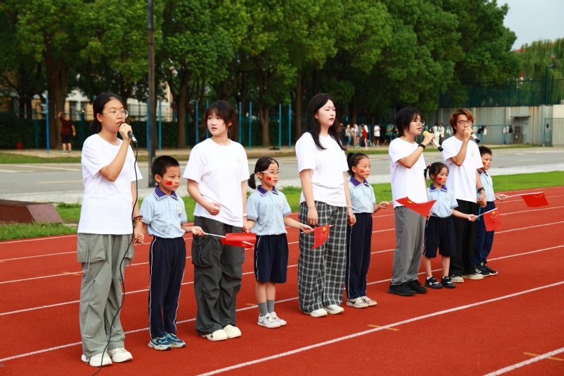 2025级公共事业管理(卫生管理方向)本科新生代表与附属浦东实验小学学生代表共同演唱《我爱你中国》,歌声清亮激昂,以青春旋律抒发爱国赤诚,让在场师生深受感染。