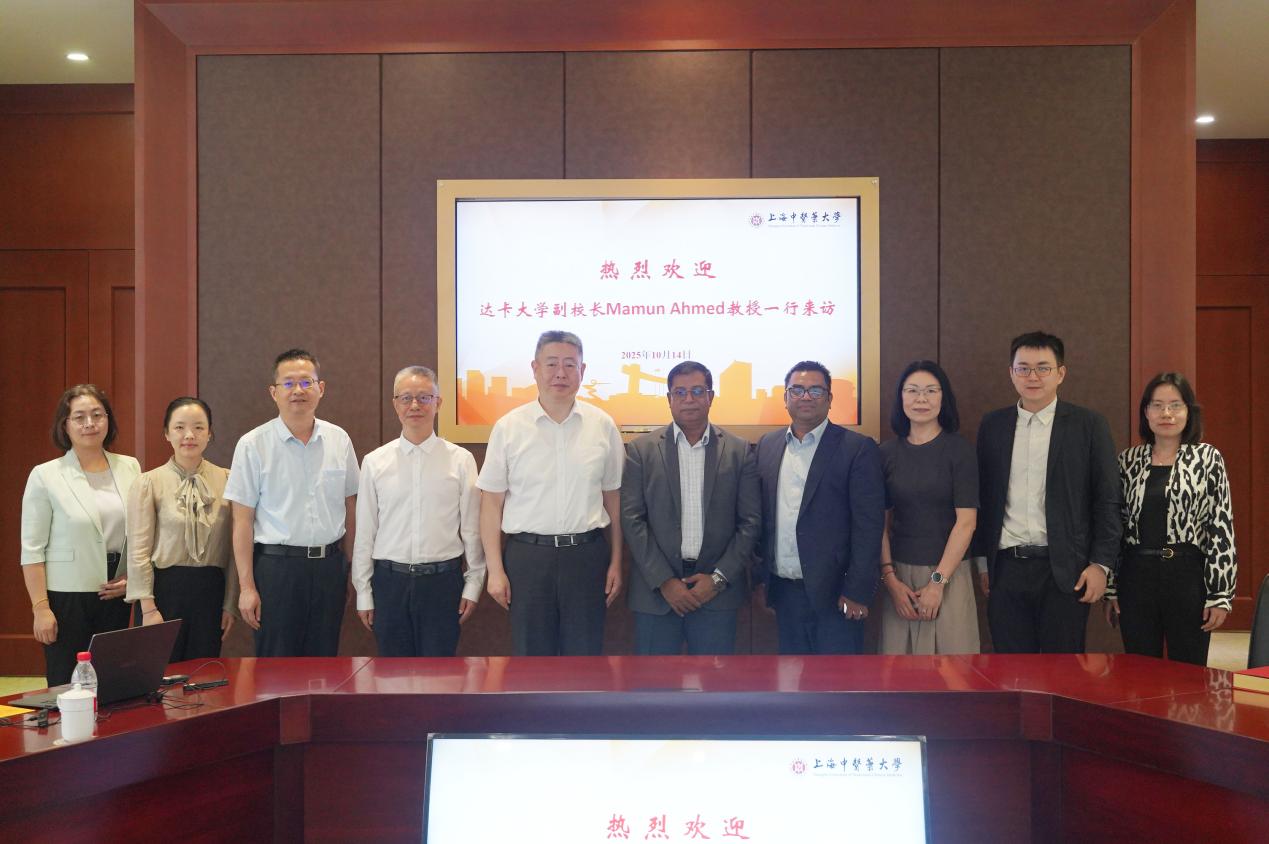 10月14日,孟加拉国达卡大学副校长马蒙·艾哈迈德(Mamun Ahmed)、国际事务处主任兼中国研究中心孟方主任沙姆萨德·莫图扎(Shamsad Mortuza)一行来校访问交流。万象城官网副校长钟力炜、国际交流处处长林勋在国际交流合作中心接待来访。上海国际问题研究院国际合作与对外交流处处长朱菊华等陪同来访。