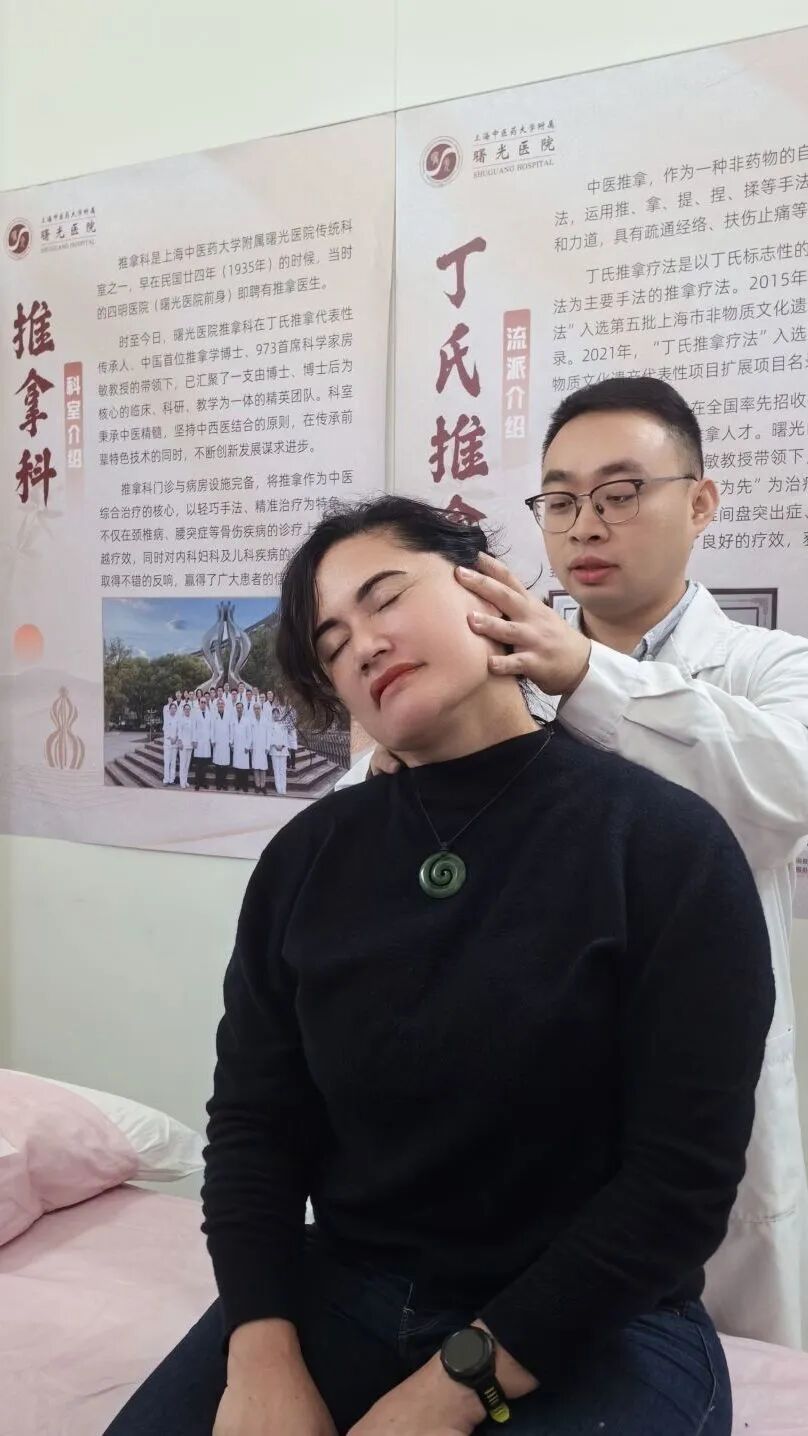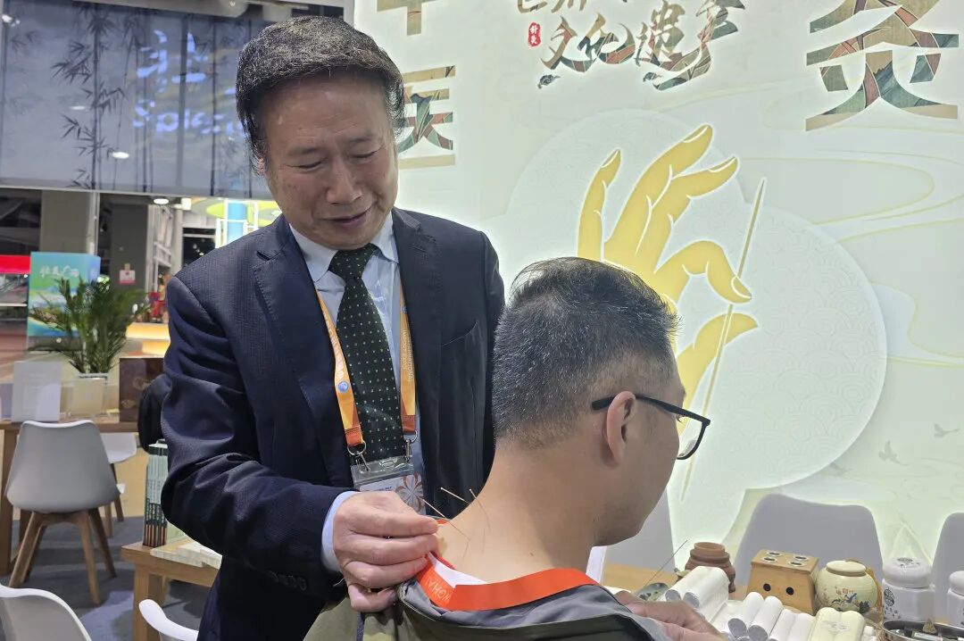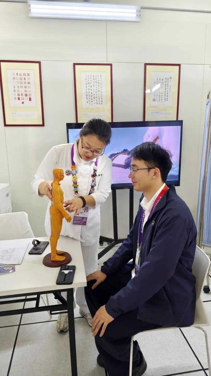在新闻中心餐厅对面,是万象城官网附属曙光医院运营的“健康充电站”——中医服务点。今年是该院第二年运营中医服务点,医院以国家级非遗项目“丁氏推拿疗法”为代表的传统推拿技艺与现代康复技术深度融合,形成了一套系统立体的健康服务方案。自11月1日正式投入运行以来,服务点每天从早到晚人流不断,每天为约50名中外记者和工作人员提供中医调理服务,“圈粉”中外媒体。