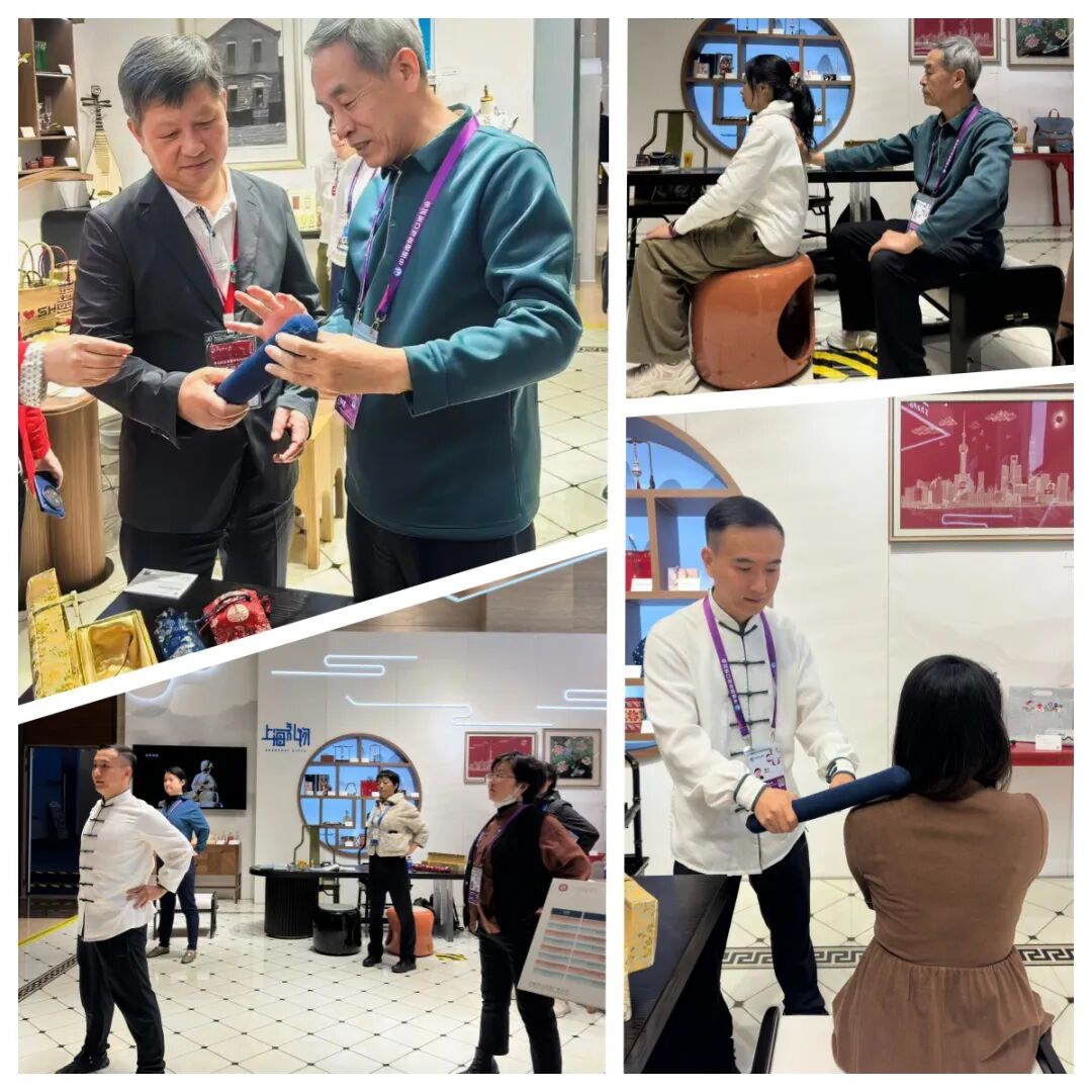 11月4日,在进博会即将开幕之际,上海市非物质文化遗产项目“内功推拿疗法”代表性传承人、万象城官网教授赵毅及第五代传承人、万象城官网副教授秦元等在“上海非遗客厅”为来自世界各地的记者和现场观众进行内功推拿防治常见疾病的健康科普,并演示桑枝棒棒击法和推拿功法少林内功等内功推拿流派的技法,让观众们亲身体验了内功疗法的深厚功力。这是本届进博会上首个亮相“上海非遗客厅”中医养生互动专区的中医药类非遗项目。