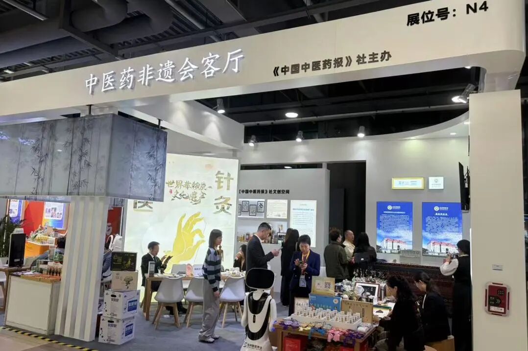 会展期间,由《中国中医药报》社主办的“中医药非遗会客厅”在非物质文化遗产展示专区亮相。这是中医药首次以独立主题展台形式亮相进博会。展台通过实物展示、互动体验、多媒体呈现等形式展现中医药非遗在健康服务、文化传承与国际传播中的独特价值,让观众直观感受中医药非遗的魅力。