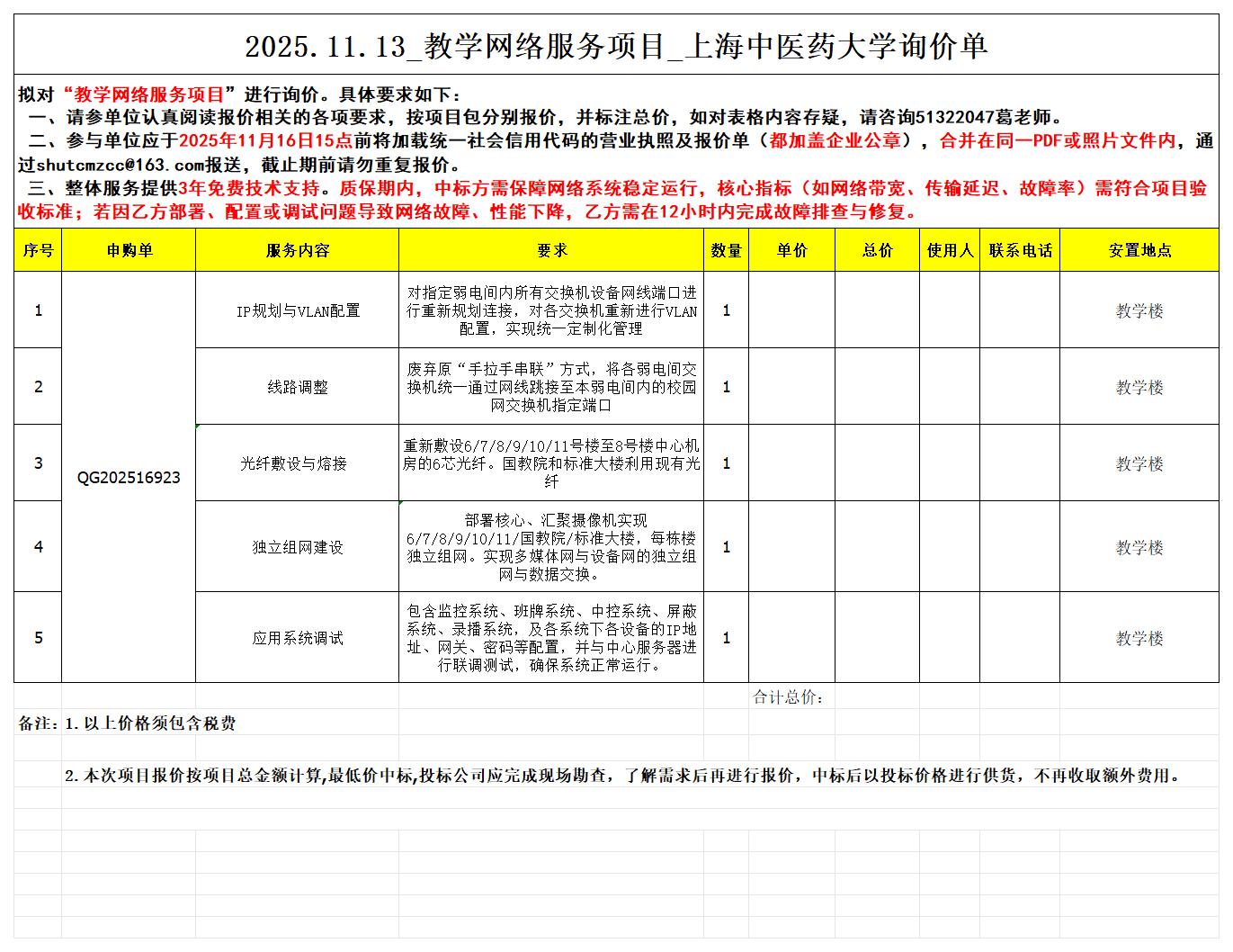 【资产管理处】2025.11.13_教学网络服务项目_awc77万象城官网询价单