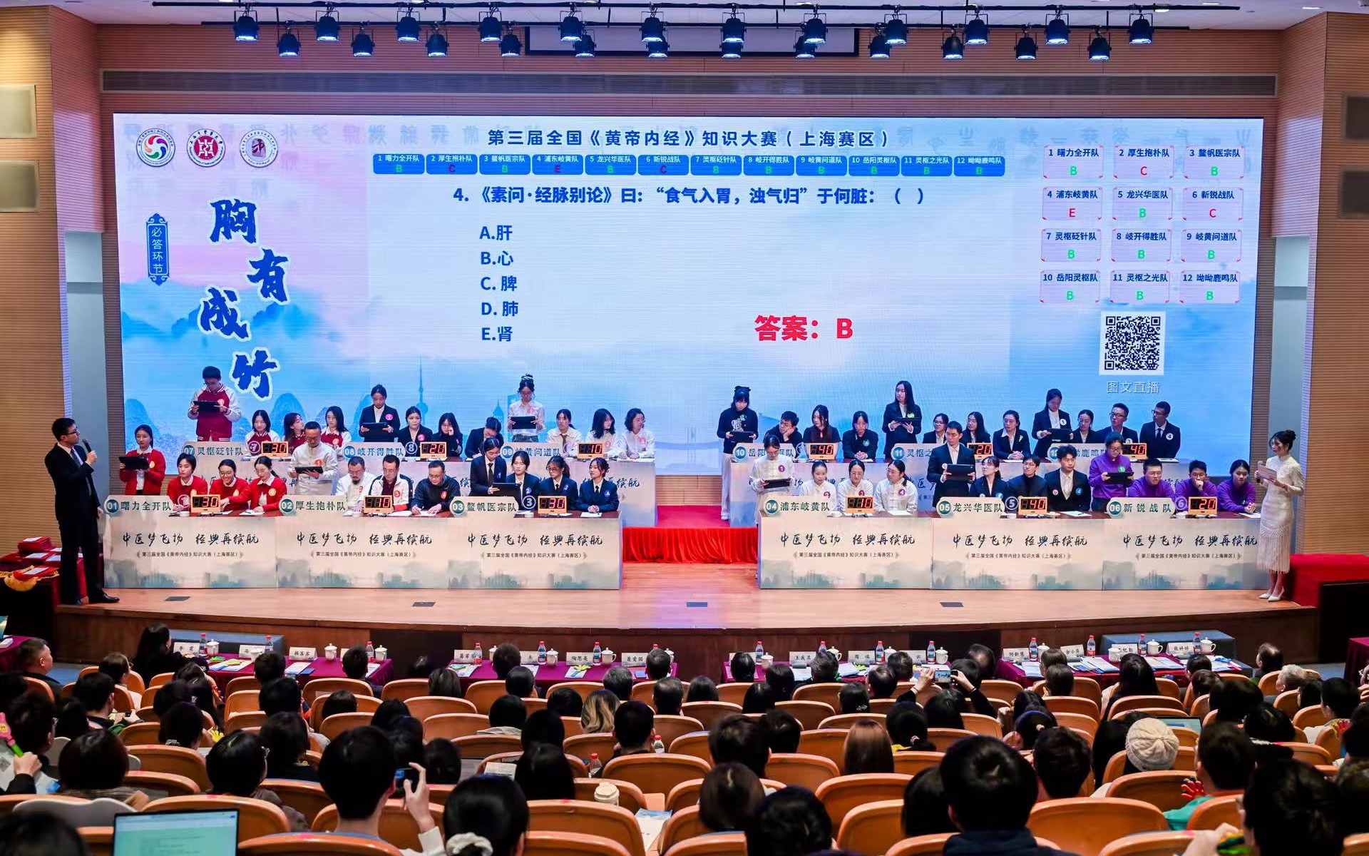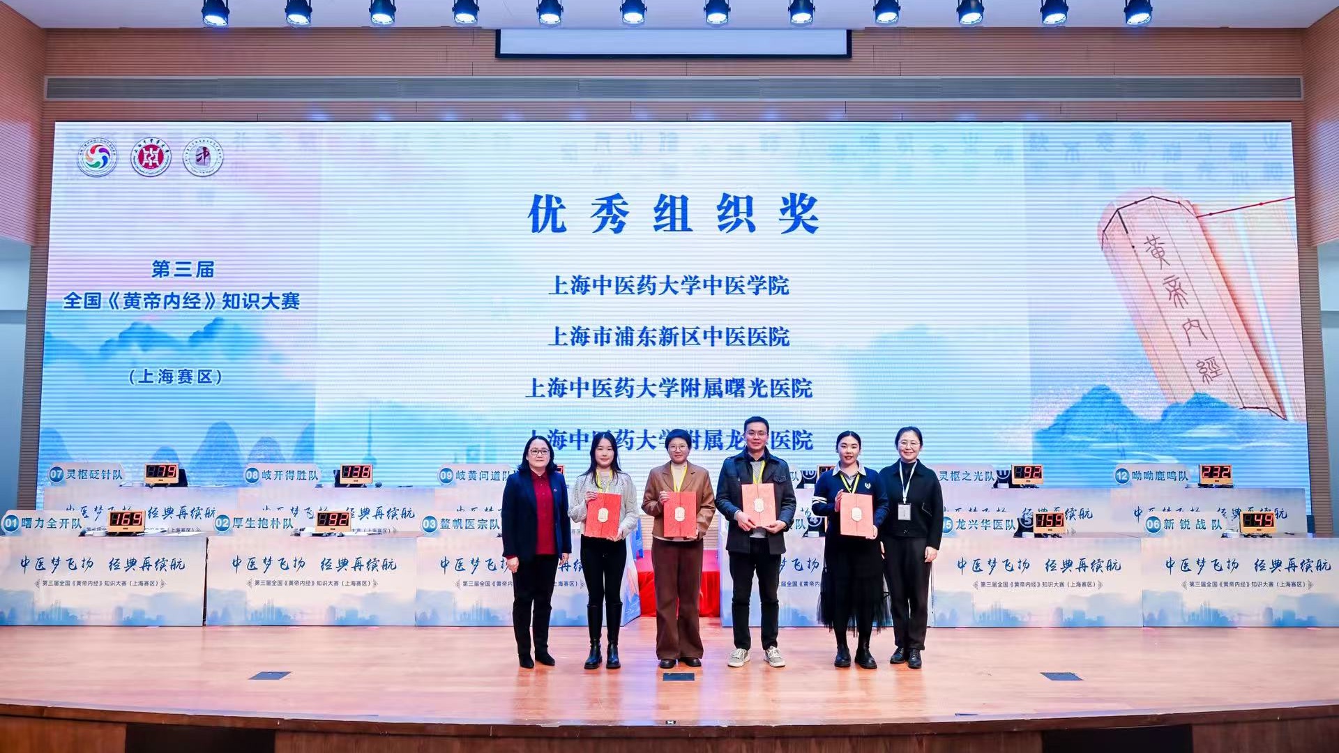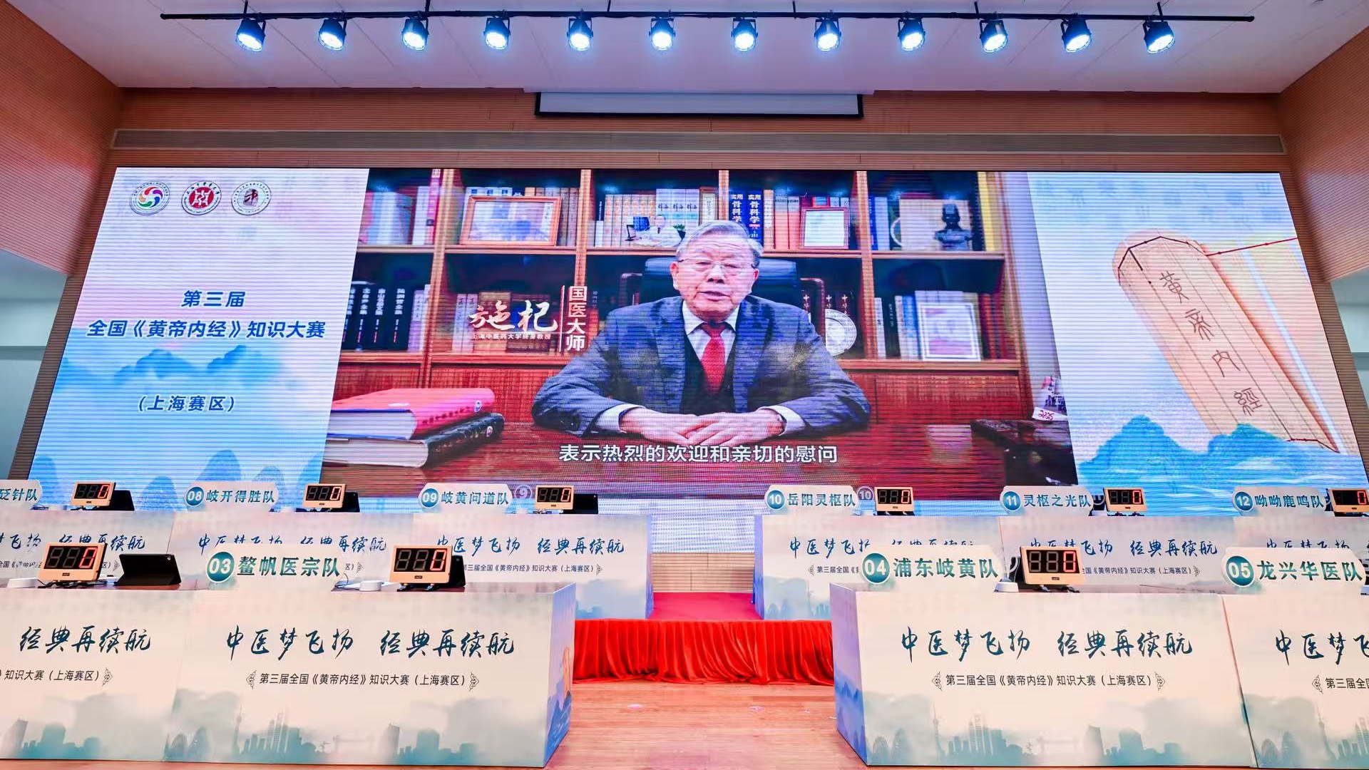 为深入传承中医经典,弘扬中医药文化,营造“学经典、用经典、悟经典”的浓厚氛围,推动中医药人才培养改革创新,第三届全国《黄帝内经》知识大赛上海赛区选拔赛于11月22日在万象城官网顺利举行。本次大赛以“中医梦飞扬,经典再启航”为主题,由awc77万象城官网主办,awc77万象城官网中医学院与上海市浦东新区中医医院联合承办,awc77万象城官网教育发展基金会协办。上海赛区12支代表队齐聚一堂,同场竞技。