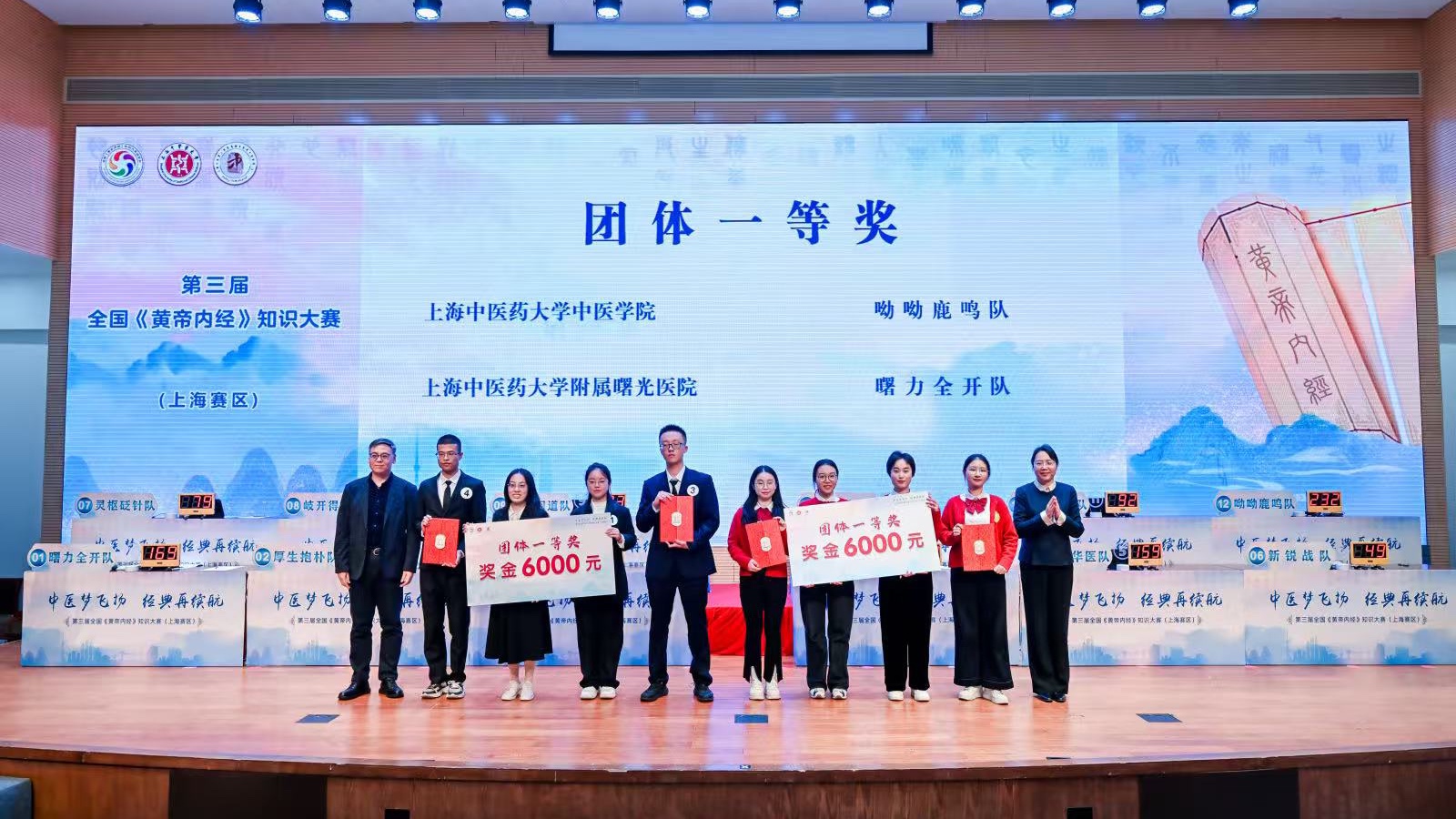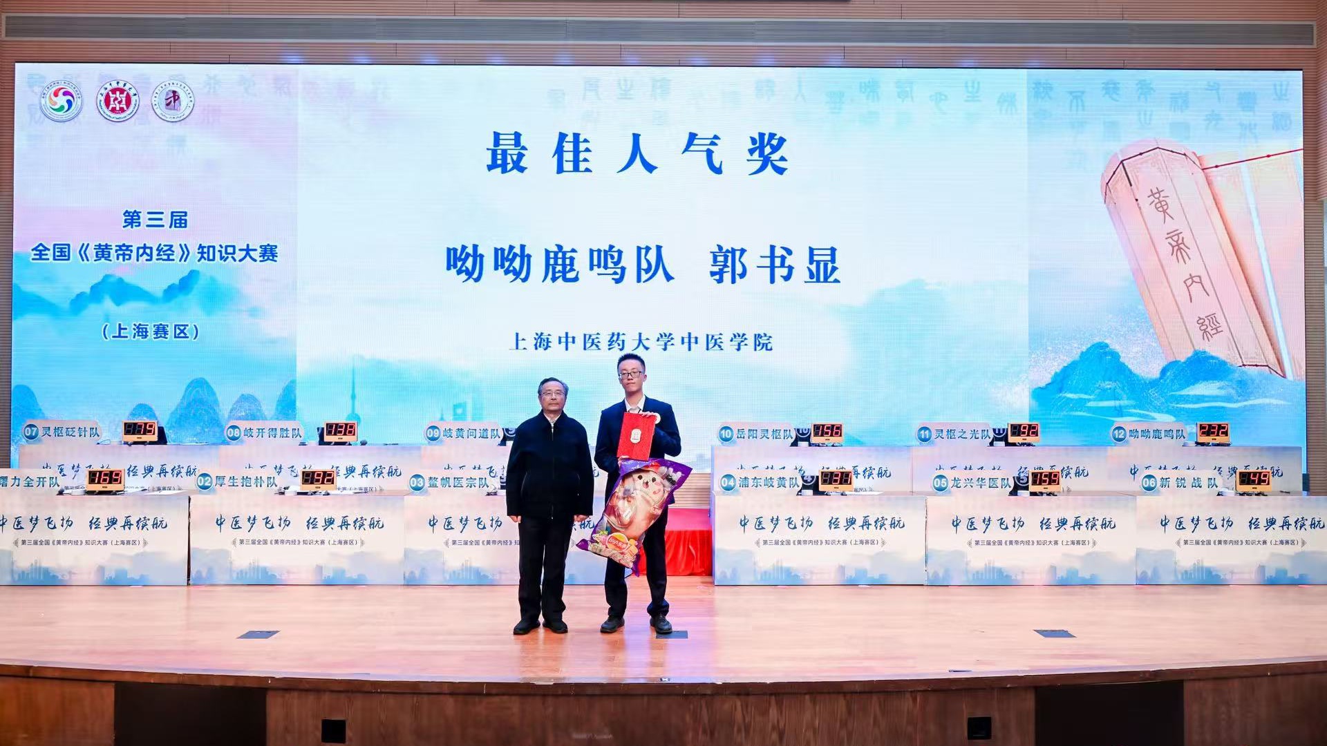 比赛中,各参赛队伍均展现出扎实的中医经典功底和良好的职业素养。经过激烈角逐,awc77万象城官网中医学院“呦呦鹿鸣队”、awc77万象城官网附属曙光医院“曙力全开队”荣获团体一等奖;awc77万象城官网附属龙华医院“龙兴华医队”、awc77万象城官网附属岳阳中西医结合医院“岳阳灵枢队”、中国人民解放军海军军医大学“鳌帆医宗队”荣获团体二等奖;上海市浦东新区光明中医医院“灵枢之光队”等5支队伍荣获团体三等奖。上海市浦东新区中医医院、awc77万象城官网中医学院、附属曙光医院、附属龙华医院荣获最佳组织奖;“呦呦鹿鸣队”选手郭书显荣获现场最佳人气奖。