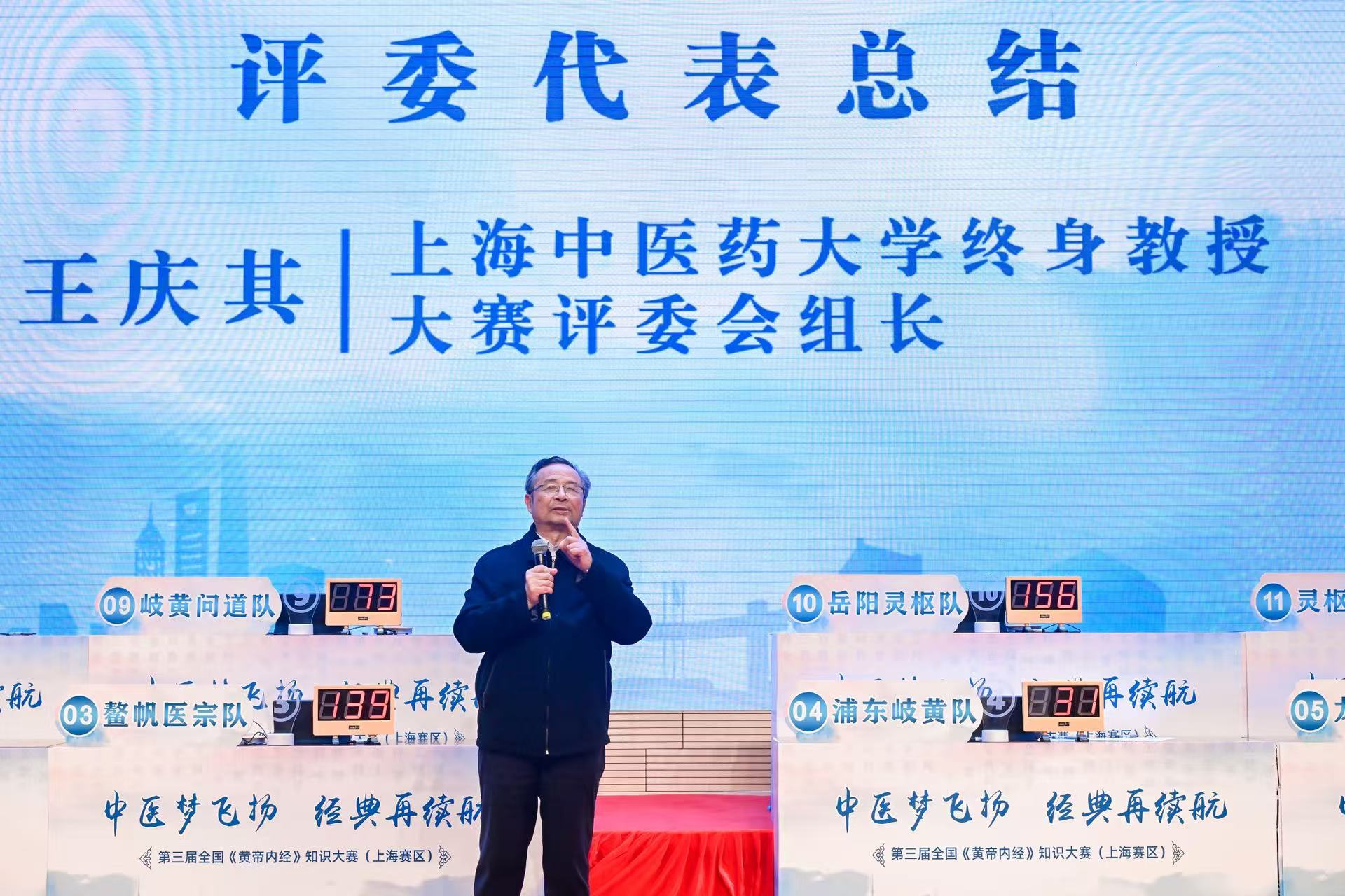 第三届全国《黄帝内经》知识大赛(上海赛区)组委会特邀王庆其、周端、尚云、何新慧、余小萍、王忆勤、张婷婷七位上海市名中医组成评委团。大赛设置必答题、抢答题、猜词题、风险题和阐释题等多种题型,全面考查选手对《黄帝内经》原文的掌握程度与理解运用能力。