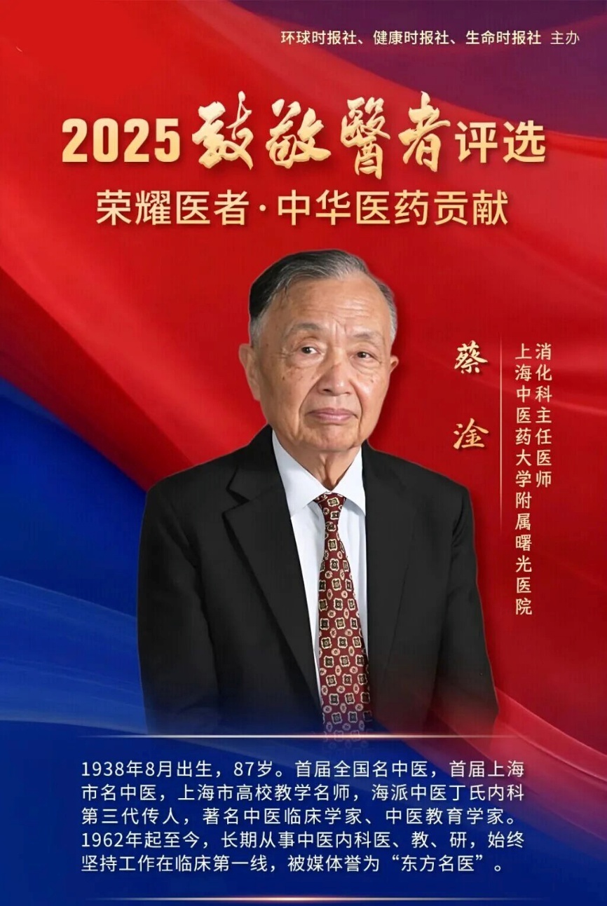 11月28日,由环球时报、健康时报、生命时报共同主办的“2025致敬医者盛典”在人民日报社举行。会上发布了“荣耀医者”“国之名医”两个榜单,旨在表彰医术精湛、医德高尚、医风卓越的典范医者代表。万象城官网附属曙光医院蔡淦教授荣获“荣耀医者·中华医药贡献”奖,附属龙华医院陈跃来教授荣获“国之名医·卓越建树”奖。
