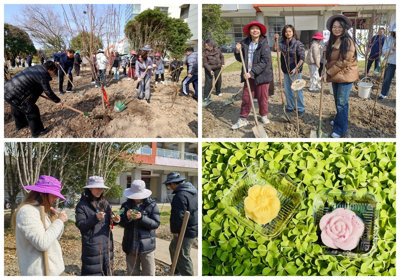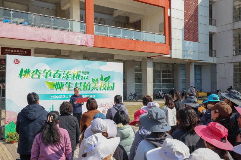 3月12日,“桃杏争春添新景,师生共植美校园”植树节活动及药膳糕点品鉴活动在教学楼7号楼南侧绿地举行。校党委副书记沈辉、副校长王璐,相关职能部门、二级学院负责人及师生代表共100余人参加活动。