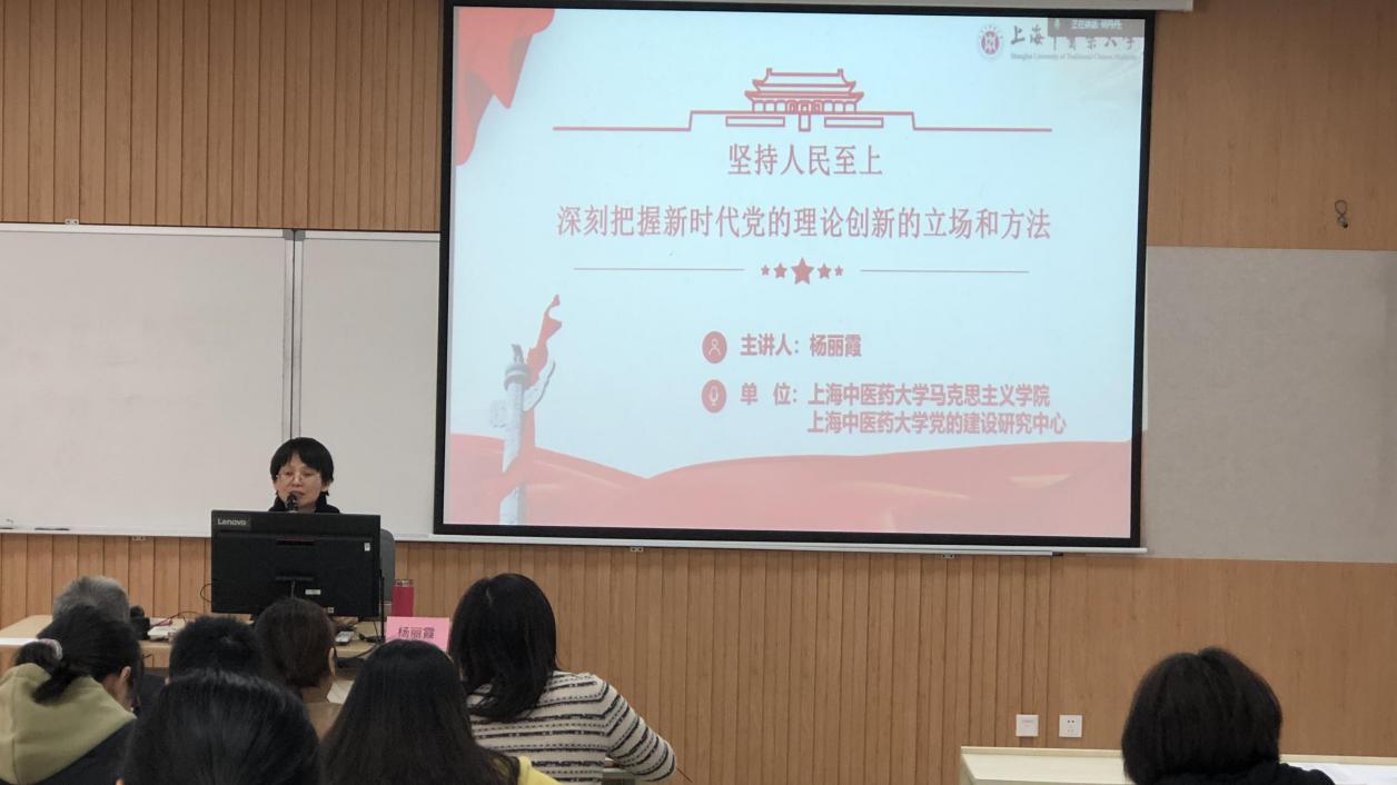 杨丽霞以“深刻把握新时代党的理论创新的立场和方法”为题,紧密结合二十大报告中关于“坚持人民至上”,从马克思主义对传统“人民观”的超越、新时代党的理论创新对人民立场的坚守与发展、新时代党的理论创新对于人民创造的尊重与激发、新时代党的理论创新对人民智慧的集中与升华四个方面进行深刻阐释和深入解读。她指出人民性是马克思主义的本质属性,理论的创新和发展离不开人民群众的实践,坚持人民至上,是贯穿习近平新时代中国特色社会主义思想的一条红线。