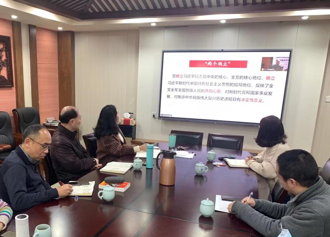 12月8日上午,气功研究所组织党政班子成员、中层干部在本所分会场集体收看了党委中心组学习会暨学习贯彻党的二十大精神专题培训班开班式,聆听了上海市委党校王公龙教授所作的“深刻领悟‘两个确立’,坚决做到‘两个维护’”专题报告,并作研讨交流。