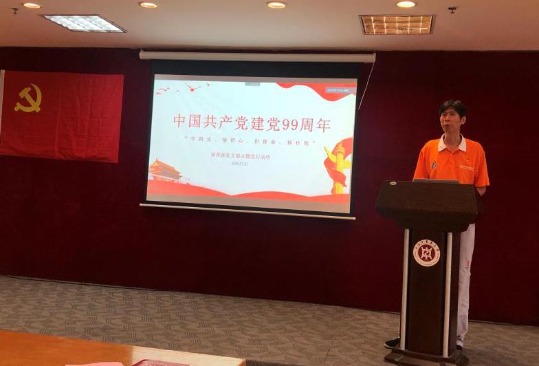 全体党员一同奏唱国歌,重温入党誓词。体育部主任吴志坤作《在疫情中领悟党史,牢记初心使命》专题党课。他提到,疫情期间,万象城官网系统众多共产党员冲锋在前,发展了一批火线入党的党员,支部党员要以“四史”学习教育为契机,不断坚定理想信念,从中获得前行动力,不断淬炼党性,做一名合格的共产党员。