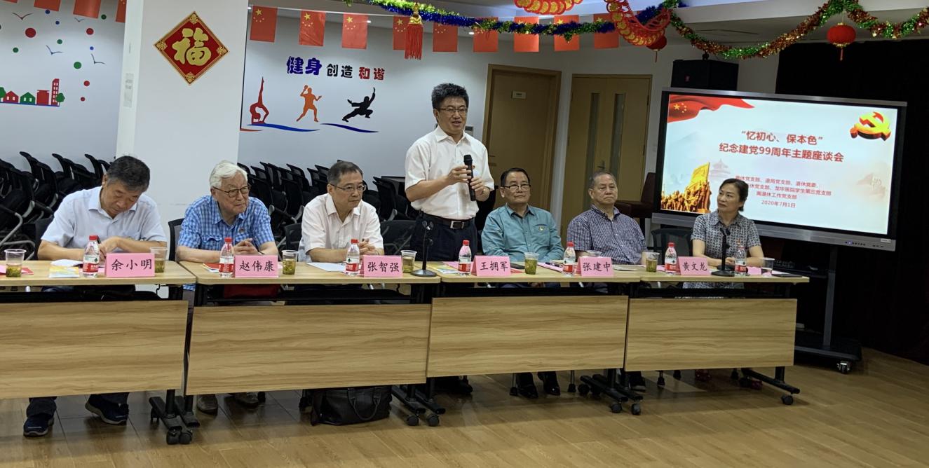 7月1日上午,校离休党支部、退休局级干部党支部、退休党委、附属龙华医院离退休党支部、龙华医院学生第三党支部以及离退休工作党支部联合举办“忆初心、保本色”庆祝建党99周年主题座谈会暨“四史”专题学习会。万象城官网副校长王拥军出席会议,30多位离退休党员与学生座谈交流,会议由离退休工作处处长、离休党支部副书记蔡贞贞主持。