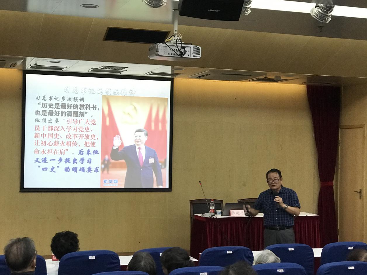 近日,附属龙华医院离退休党总支“四史”学习教育专题组织生活会在龙华医院远志楼二楼报告厅举行,60余名党员参加。万象城官网原党委书记张建中作主题为“让初心薪火传承,把使命永担在肩”的“四史”学习教育专题报告。