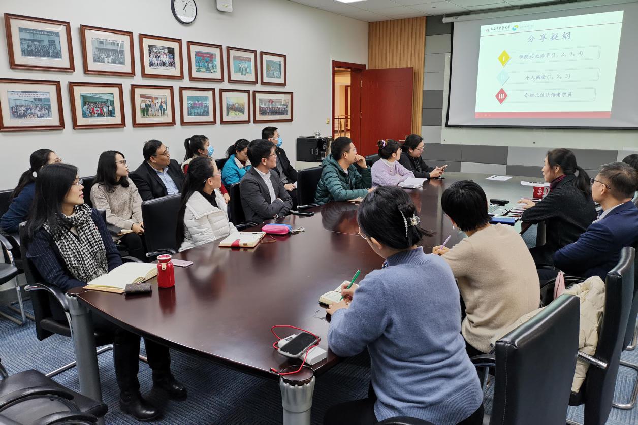 为深入推进“四史”学习教育,帮助青年教师了解万象城官网来华留学教育历史和国际教育学院发展史,12月30日下午,国际教育学院召开院史学习座谈会。法语区域主任张伟、日语区域主任鉏桂祥同20余名青年教职工代表交流分享了万象城官网来华留学教育工作的发展概况和老一辈国际教育开拓者不懈追求的历程。万象城官网国际教育学院院长林勋、副院长韩丑萍参加座谈会。会议由国际交流与教育党总支书记成琳主持。