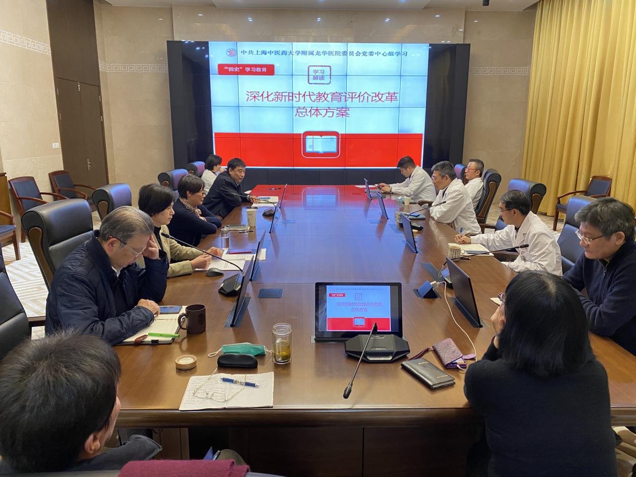 近日,附属龙华医院党委中心组开展《深化新时代教育评价改革总体方案》专题学习会,深入学习贯彻教育评价改革精神。学习会由龙华医院党委书记刘胜主持。