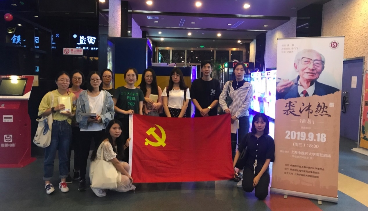 为深入开展“不忘初心、牢记使命”主题教育, 9月18日晚,中药学院研究生第三党支部全体党员一同观看了由学校党委出品的话剧《裘沛然》。本剧从“重逢”“传承”“大医”“至爱”“急诊”“心声”六个篇章展开,在裘老真实人生经历的基础上进行了艺术处理,以现任教职员工和学生为核心进行精心演绎,讲述了国医大师裘沛然的晚年生活以及行医故事。