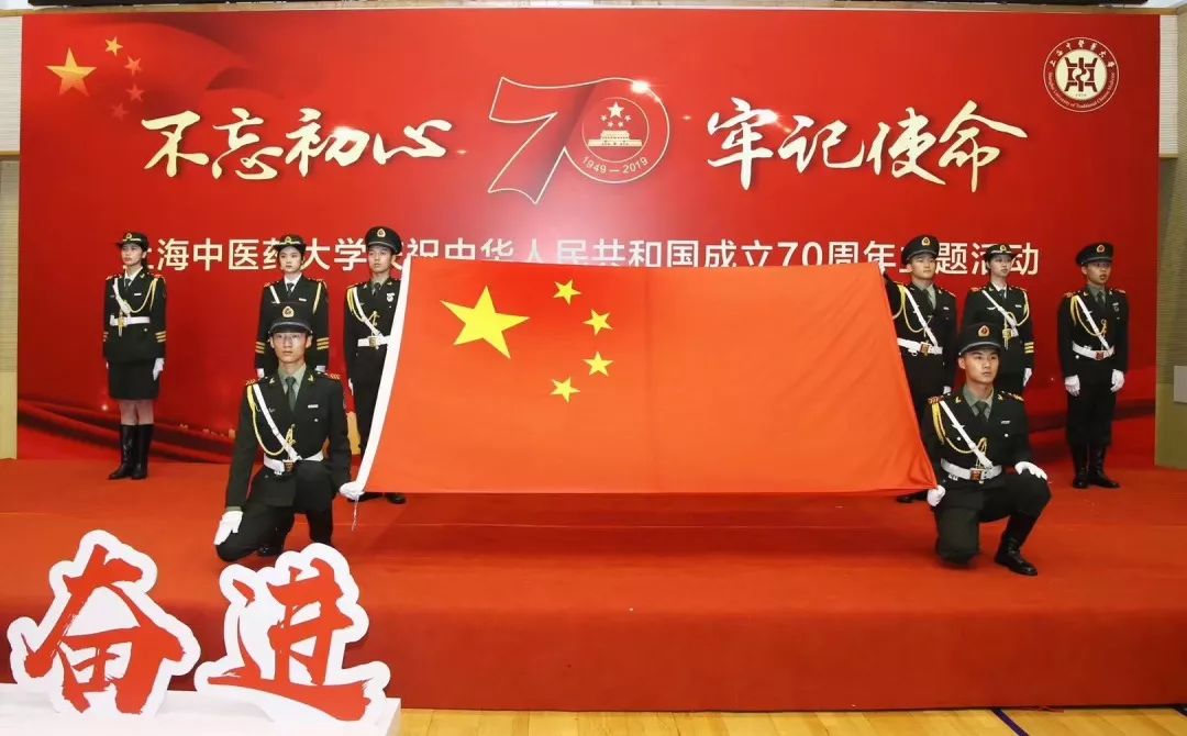为了庆祝祖国母亲七十华诞,十一当天我们在上中医校园里一起升国旗、一起观看阅兵仪式。观看直播的过程中,当我看到头发花白的老革命战士及其亲属出场时,当我听到2008北京奥运会主题曲响起时,内心百感交集,我真心祝愿这些为祖国奉献的前辈们能够健康长寿,与祖国共赴百年之约。我看到各行各业代表组成的各式各样的游行方队,经过天安门广场仅几分钟,但他们的排练非一日之功。他们是融入祖国心脏的最前线血液,和祖国一起跃动,见证祖国成长。我爱你中国,爱你坚守的过往,也爱你执着的前行。没有什么力量能撼动你的尊贵,中国,祝你生日快乐!