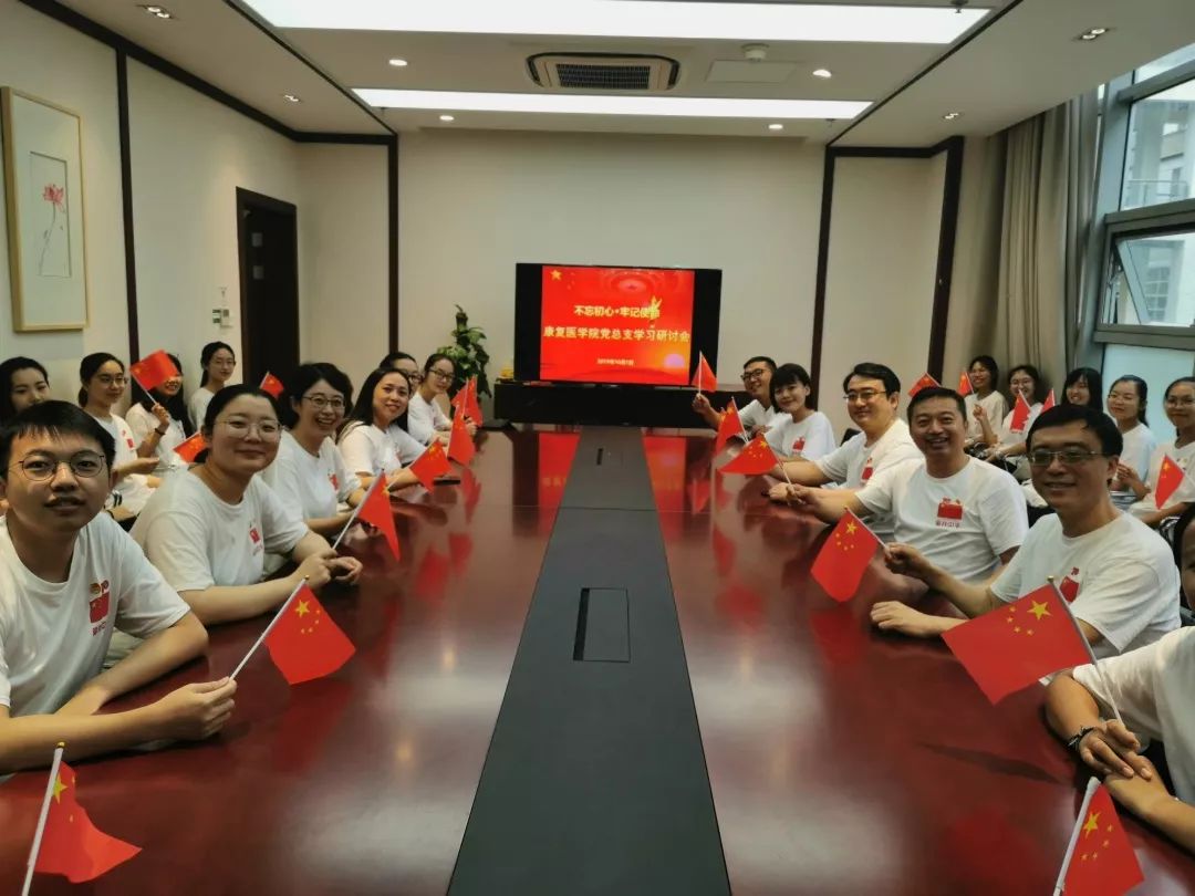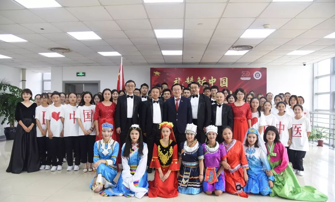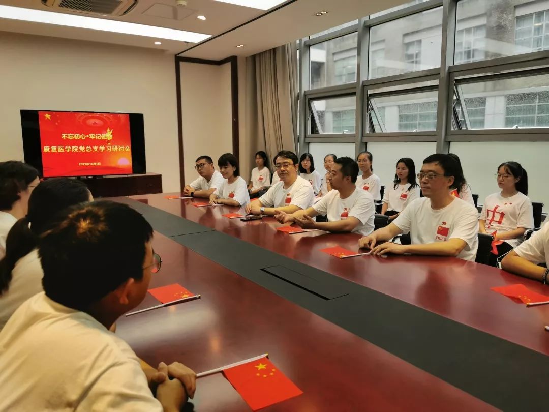 10月1日上午,康复医学院党总支书记向延卫,院长单春雷,党总支副书记毕亚男,副院长胡军、刘晓丹和学生代表一起参加awc77万象城官网庆祝中华人民共和国成立70周年活动暨“不忘初心、牢记使命”主题教育。观礼结束之后,教师党员、学生党员、入党积极分子代表、入党申请人代表一起交流心得体会,并合唱《爱我中华》。“五十六族兄弟姐妹是一家”,在这个特殊的日子里,康复医学院师生共聚在一起,共话初心使命。
