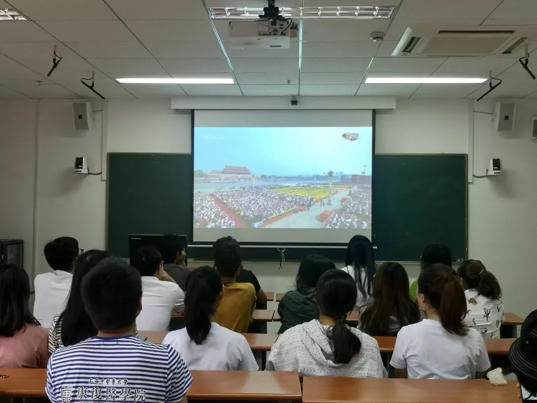 升旗仪式后,康复医学院师生代表前往图书馆报告厅集体收看庆祝中华人民共和国成立70周年大会的实况转播,为新中国成立70年来发生的翻天覆地变化欢欣鼓舞。作为岐黄学子,我们更要铭记并弘扬爱国精神,牢记使命、敢于担当,为祖国发展贡献青春力量。