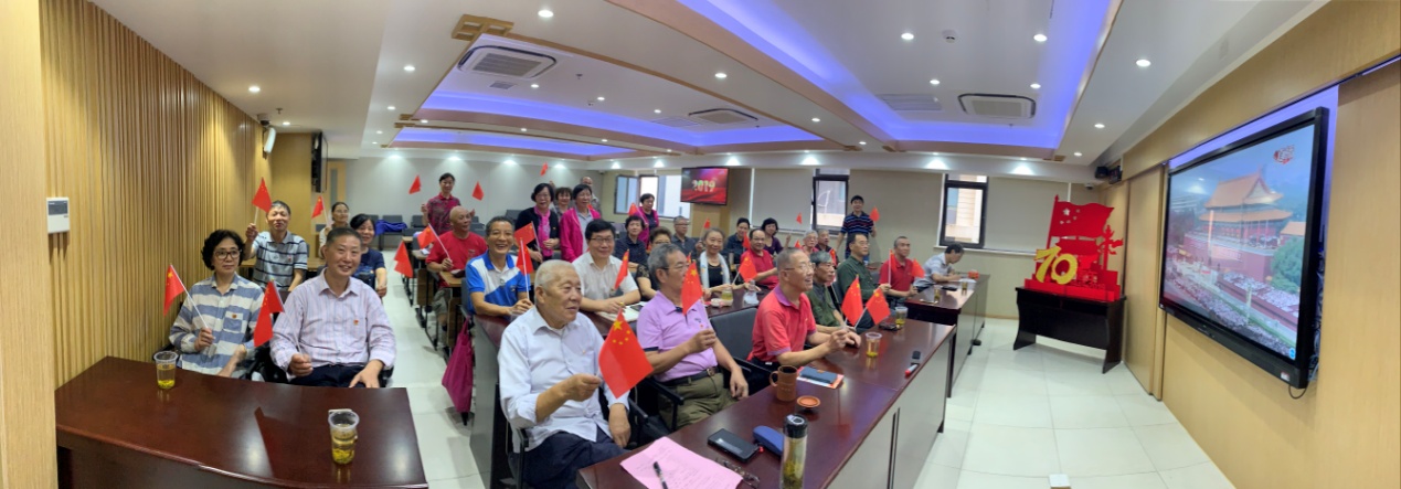 践行初心使命,共庆七十华诞!10月1日庆祝新中国成立70周年阅兵式在北京天安门广场举行。校退休党委与离退休工作处联合组织了30多位退休教职工在零陵校区307室会议室观看了直播,会议由离退休工作处处长蔡贞贞主持。