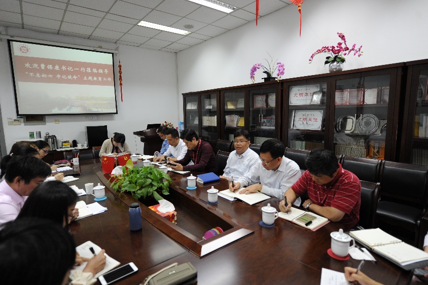 10月8日上午,曹锡康带领党委校长办公室、人事处、财务处、后勤保障处、基建处、资产管理处等职能部门负责人赴马克思主义学院,开展“不忘初心、牢记使命”主题教育专题调研、现场办公。马克思主义学院班子成员、各教研室主任和青年教师代表参加会议。会上,曹锡康听取了马院党政负责人关于加强马克思主义学院建设、进一步办好思想政治理论课的专题汇报。近期,学院申报马克思主义理论硕士学位授权点取得实质性进展,成功举办“第二届全国高等中医药院校马克思主义学院院长论坛”,在上海高校思想政治理论课教学大比武中获得2个一等奖、2个二等奖的佳绩,国家社会科学基金项目获得突破等。曹锡康肯定了马院取得的成绩,同时强调要深入学习贯彻习近平总书记在学校思政课教师座谈会上的重要讲话精神,加强党的领导,建设好马克思主义学院。与会同志围绕马克思主义理论学科方向学术带头人队伍建设、思政课教师队伍和学科队伍建设等方面问题提出意见和建议。相关职能部门负责人对马院的诉求给予回应,有些问题即知即改,当场予以解决。最后,曹锡康从加强党的建设、加强队伍建设、促进教学与科研相长3个方面对马院提出了希望和要求。一是坚持“马院姓马,在马言马”,深入开展“不忘初心、牢记使命”主题教育,在党的建设方面马院要成为一面旗帜,走在全校的前列;二是坚持引培结合,提升思政课教师队伍整体水平,造就旗帜型的领军人物;三是坚持教学与科研相互促进,推动思想政治理论课改革创新,建立新型的师生关系,真正让思政课入耳、入脑、入心,自觉用习近平新时代中国特色社会主义思想铸魂育人。